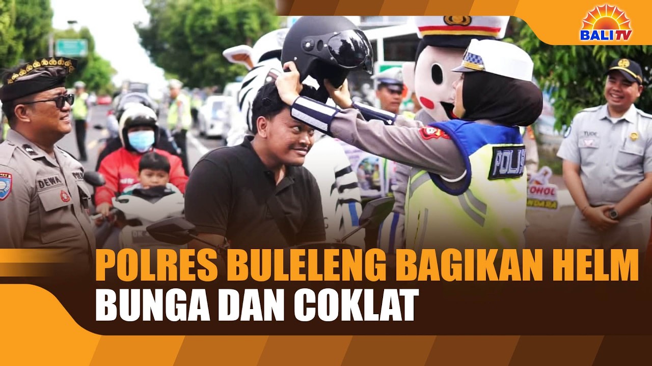 POLRES BULELENG BAGIKAN HELM, BUNGA DAN COKLAT