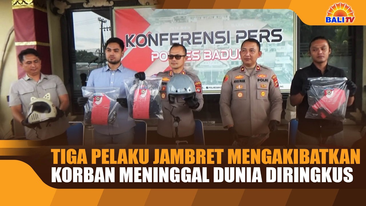 PELAKU AKSI JAMBRET DI JALAN PENGUBENGAN , KEROBOKAN KELOD , KUTA UTARA , YANG MENGAKIBATKAN KORBAN MENINGGAL DUNIA , BERHASIL DIBEKUK PETUGAS RESKRIM POLRES BADUNG DAN POLSEK KUTA UTARA . PELAKU BERJUMLAH TIGA ORANG MERUPAKAN RESIDIVIS YANG BARU KELUAR DARI LAPAS GIANYAR , DAN DIBEKUK KETIKA AKAN KABUR KE PULAU JAWA .