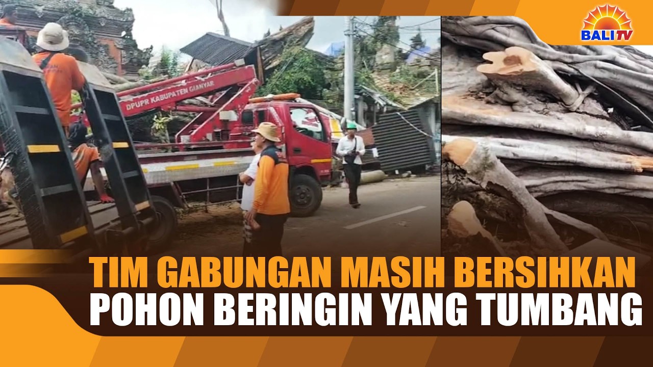 SEJAK TIGA HARI LALU HINGGA SELASA 17 FEBRUARI 2026, TIM GABUNGAN MASIH MELAKUKAN PEMBERSIHAN SISA-SISA POHON BERINGIN YANG TUMBANG DI PURI KANTOR, UBUD. HAL INI DILAKUKAN, KARENA PADA PEMBERSIHAN SENIN 16 FEBRUARI 2026, TERHENTI TERKENDALAI HUJAN LEBAT.