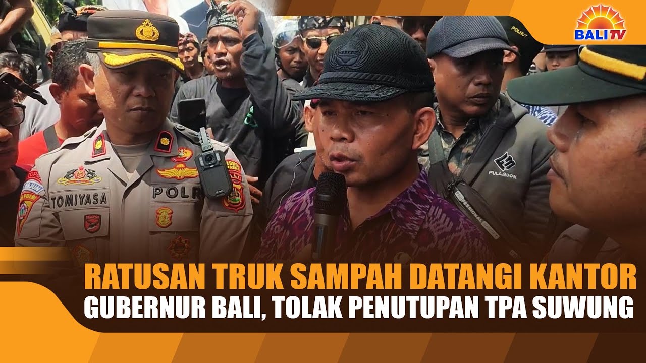 RATUSAN TRUK SAMPAH DATANGI KANTOR GUBERNUR BALI, TOLAK PENUTUPAN TPA SUWUNG