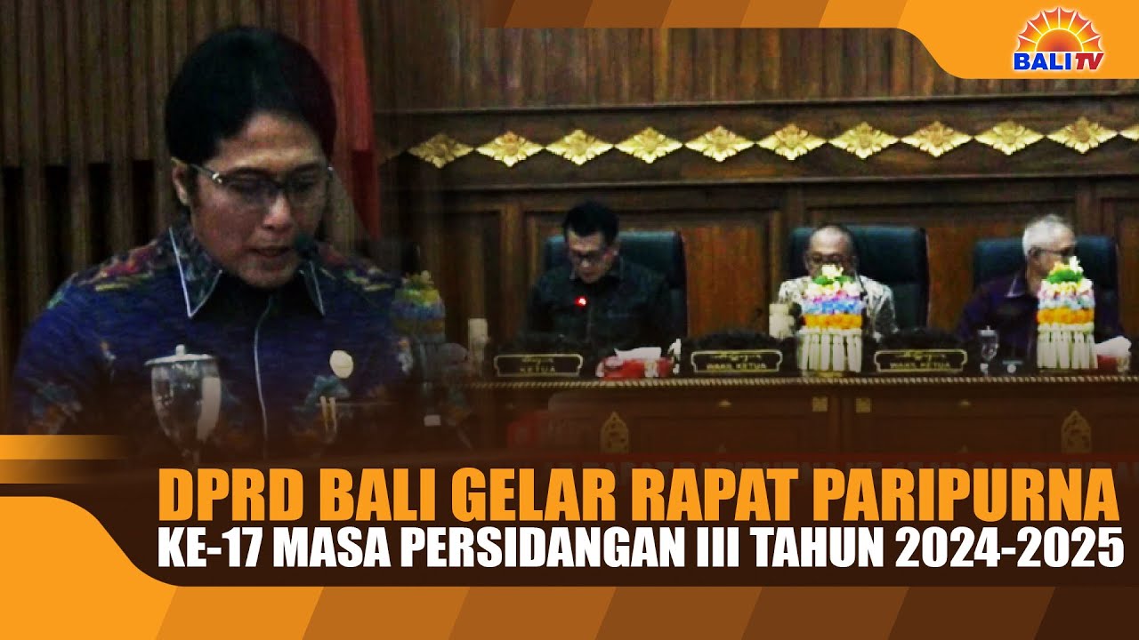 DEWAN PERWAKILAN RAKYAT DAERAH, DPRD PROVINSI BALI MENGGELAR RAPAT PARIPURNA KE-17 MASA PERSIDANGAN III TAHUN 2024-2025 DENGAN AGENDA PENYAMPAIAN PENJELASAN GUBERNUR TERHADAP RAPERDA TENTANG RENCANA PEMBANGUNAN JANGKA MENENGAH DAERAH (RPJMD) PROVINSI BALI TAHUN 2025-2029, DAN RAPERDA TENTANG PERTANGGUNGJAWABAN PELAKSANAAN ANGGARAN PENDAPATAN DAN BELANJA DAERAH (APBD) SEMESTA BERENCANA PROVINSI BALI TAHUN ANGGARAN 2024.